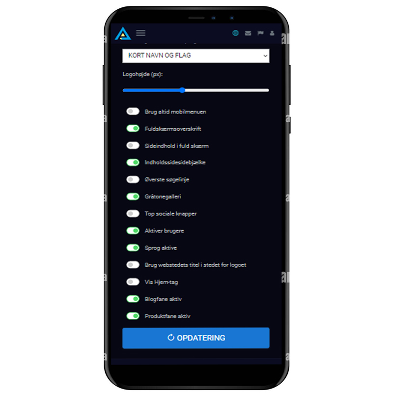Du kan aktivere/deaktivere alle sektioner på dit websted.