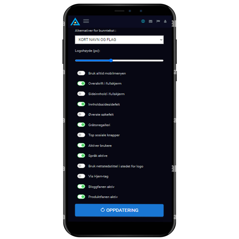 Du kan aktivere/deaktivere alle seksjoner på nettstedet ditt.