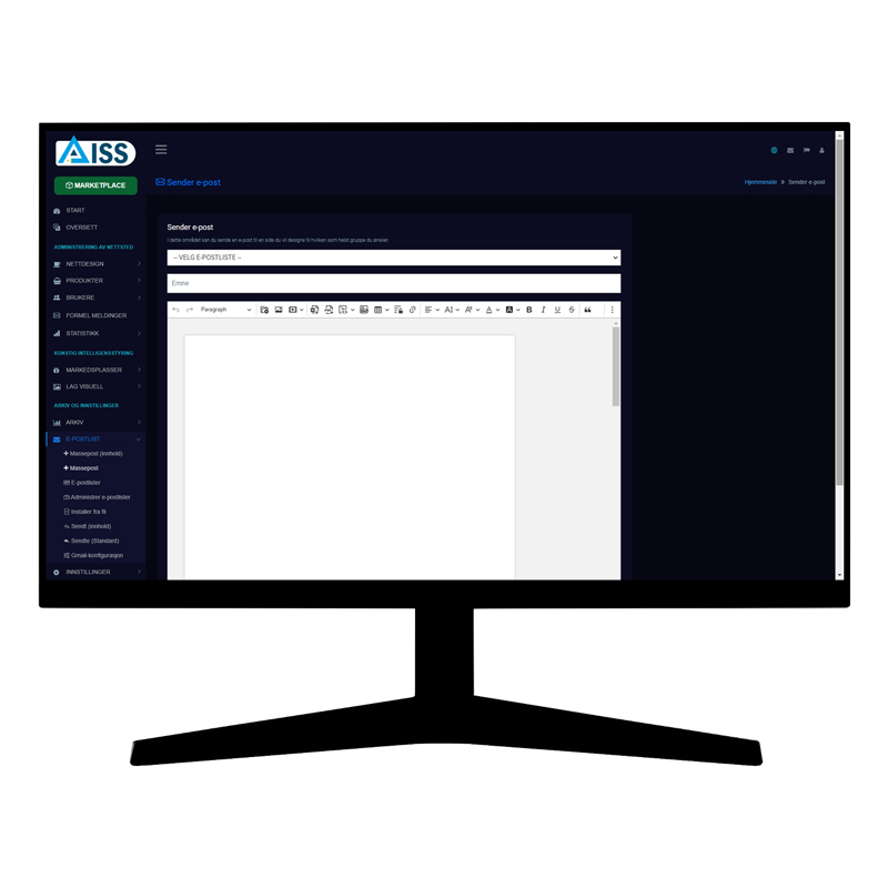 Med AISS MARKETPLACE kan du lage så mange e-postlister du vil, og sende kunstig intelligens eller original innhold til alle på e-postlisten din med ett enkelt klikk.