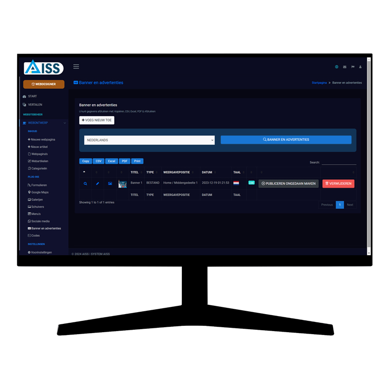 AISS WEBDESIGNER met mogelijkheid tot jaarlijkse betaling.